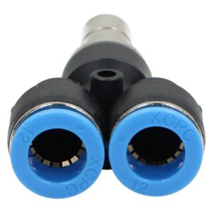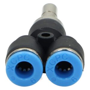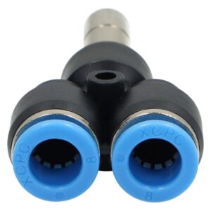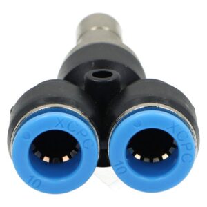 Trójniki wtykowe Y to praktyczne złączki pneumatyczne, umożliwiające szybkie i niezawodne rozdzielenie przewodu pneumatycznego na dwa tory przepływu. W ofercie dostępne są dwa podstawowe warianty: trójniki wtykowe na wąż oraz trójniki pneumatyczne z przyłączem gwintowanym. Pozwala to na dobór odpowiedniego typu w zależności od konkretnej konfiguracji instalacji.